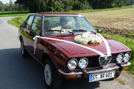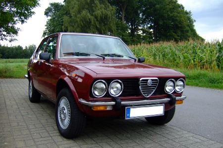 Eine Alfetta Baujahr 1981 gehörte bis zum 16. Juni 2023 auch zu uns! Nach 14 Jahren und ca. 6.700 zurückgelegten Kilometern haben wir uns schweren Herzens dazu entschlossen dieses wundervolle Fahrzeug zu verkaufen. Wir hatten eine sehr schöne Zeit mit einigen Ausfahrten, Besuchen von Oldtimer-Treffen usw..